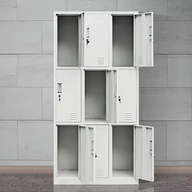 9-door metallic storage cabinet